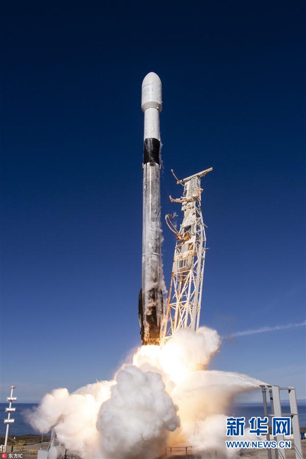 當?shù)貢r間2018年12月3日,SpaceX的“獵鷹9”火箭在加州范登堡空軍基地成功發(fā)射,攜帶64顆衛(wèi)星升空。(圖片來源:東方IC)