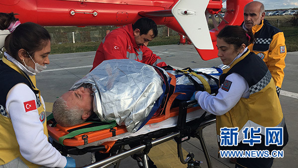 1月7日,在土耳其薩姆松,救援人員準(zhǔn)備用直升機(jī)運(yùn)送受傷船員。 新華社發(fā)