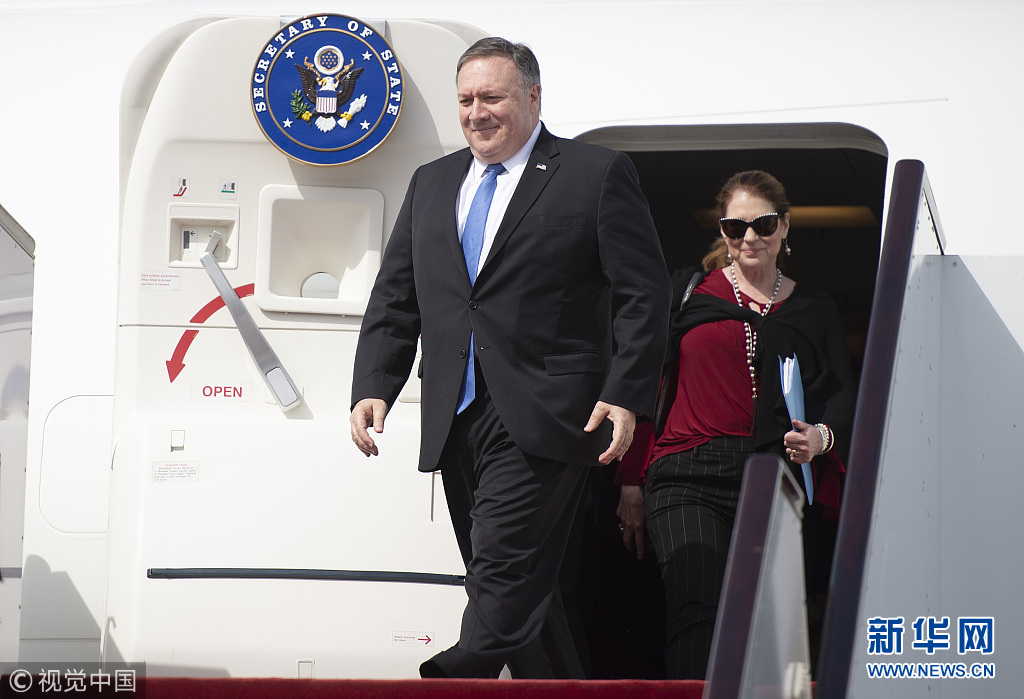 2019年1月13日,卡塔爾多哈,美國國務(wù)卿邁克·蓬佩奧訪問卡塔爾。蓬佩奧與卡塔爾副首相兼外交大臣穆罕默德在多哈的喜來登大酒店簽署了諒解備忘錄和意向聲明并舉行聯(lián)合記者會。蓬佩奧表示,兩國外交部門領(lǐng)導(dǎo)人當(dāng)天簽署了一份諒解備忘錄,將擴建和改造烏代德美國空軍基地。(圖片來源:視覺中國)