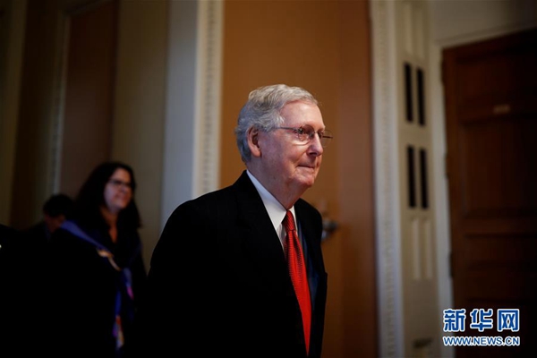 1月24日,在美國華盛頓國會山,國會參議院多數(shù)黨領(lǐng)袖麥康奈爾前往參議院。新華社發(fā)(沈霆 攝)