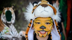 3月17日,在馬來西亞吉隆坡,一名兒童化上“老虎妝”。 新華社發(fā)(張紋綜攝)