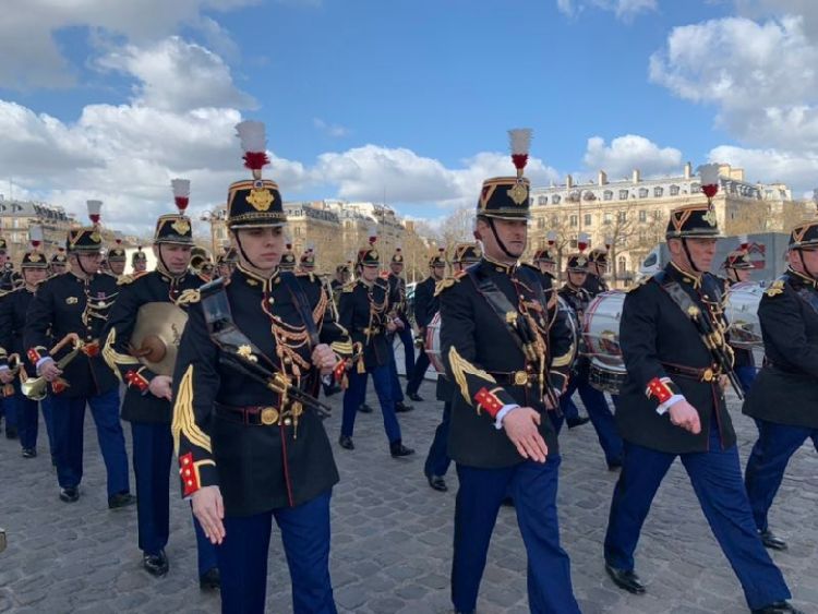 凱旋門星形廣場上,儀仗隊和軍樂團整齊列隊,靜候習近平主席的到來。新華社記者 高潔 攝