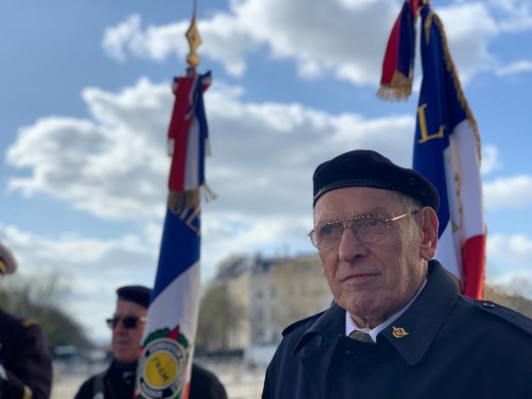 法國老戰(zhàn)士在凱旋門前。新華社記者 高潔 攝