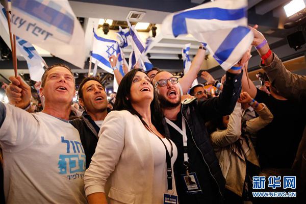 據(jù)以色列公共廣播公司的出口民調(diào),藍白黨獲得37個席位,利庫德集團獲得36個席位。其他媒體公布的出口民調(diào)也顯示,兩個政黨獲得的席位數(shù)相同或接近。