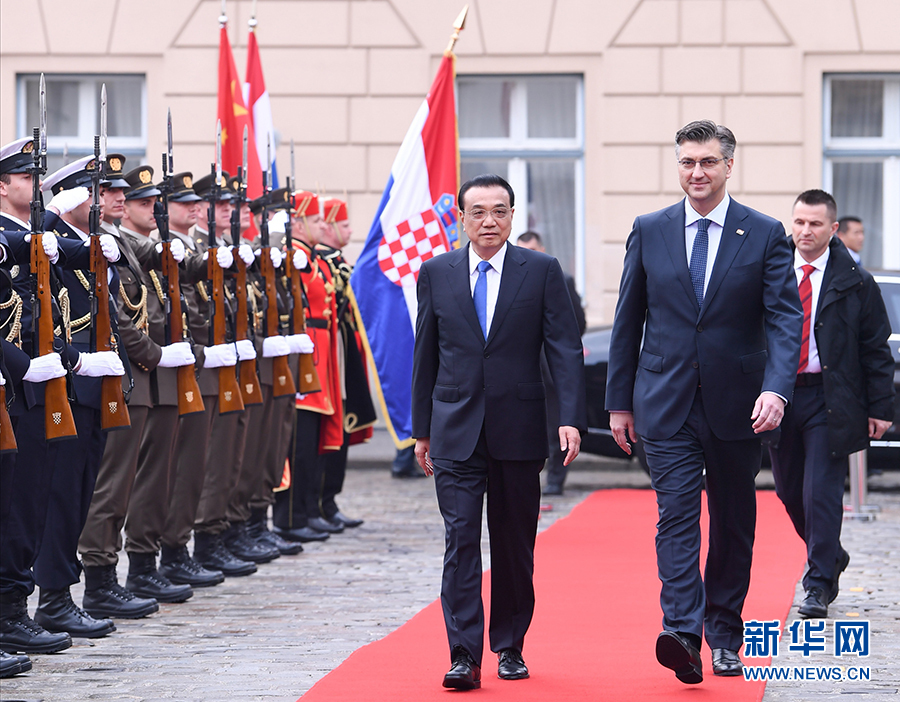 當(dāng)?shù)貢r(shí)間4月10日上午,國(guó)務(wù)院總理李克強(qiáng)在薩格勒布總理府同克羅地亞總理普連科維奇舉行會(huì)談。這是普連科維奇在圣馬可廣場(chǎng)為李克強(qiáng)舉行隆重歡迎儀式。 新華社記者申宏攝