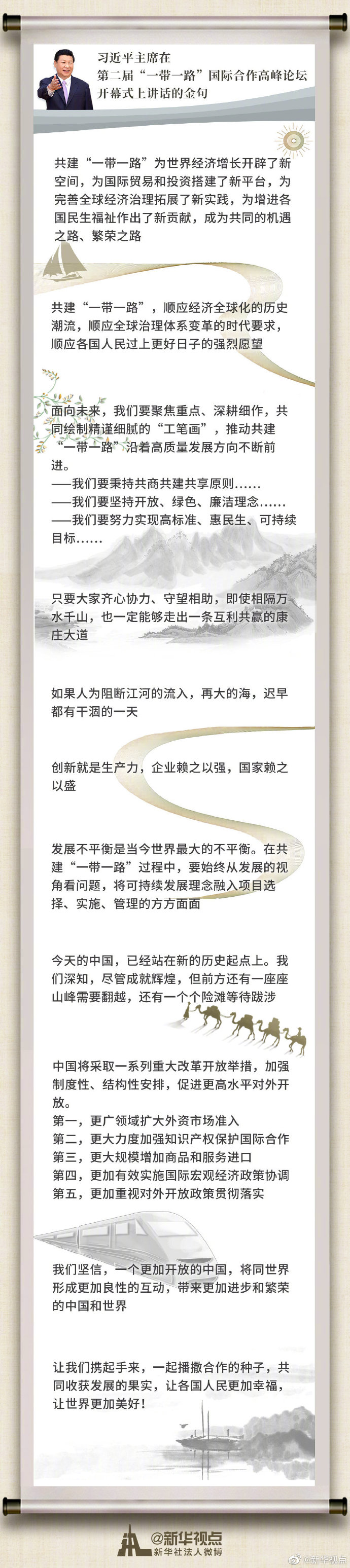 習(xí)近平主席在第二屆“一帶一路”國際合作高峰論壇開幕式上講話金句