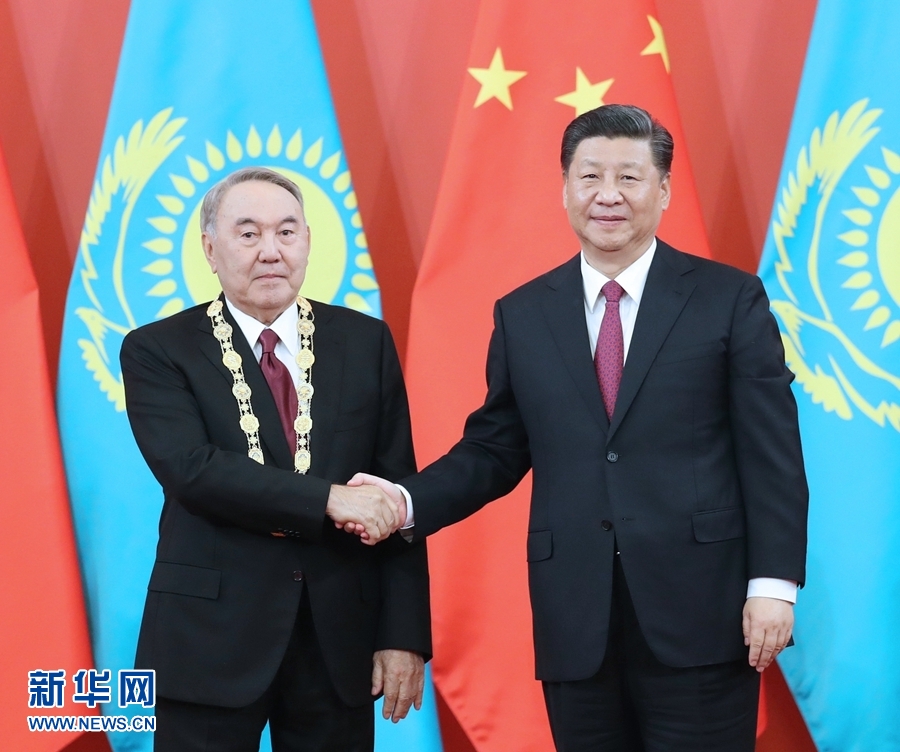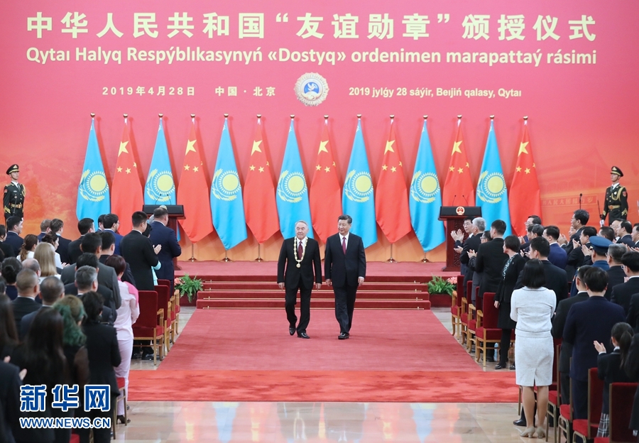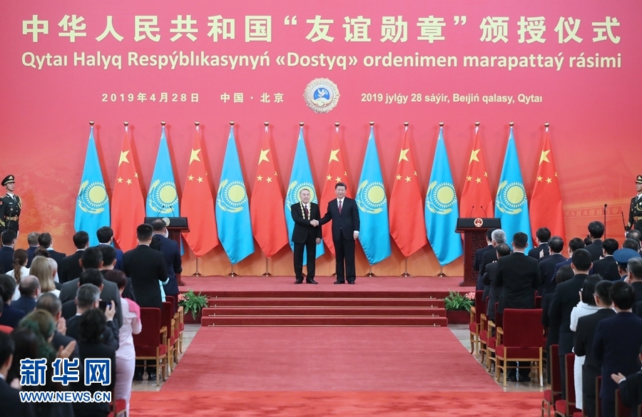 新華社北京4月28日電(記者白潔、馬巖)國(guó)家主席習(xí)近平28日在人民大會(huì)堂中央大廳為哈薩克斯坦首任總統(tǒng)納扎爾巴耶夫舉行“友誼勛章”頒授儀式。