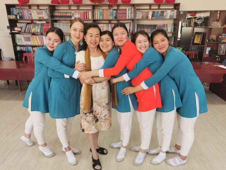 祁燕與舞劍學生合影。(新華社記者 王申 攝)