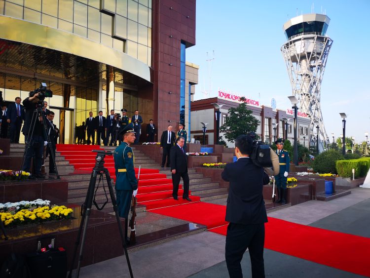 在出席完比什凱克舉行的上合組織峰會(huì)后,為能親自到機(jī)場(chǎng)迎接習(xí)主席,拉赫蒙總統(tǒng)提前趕回國(guó)內(nèi)。15日下午會(huì)見(jiàn)開(kāi)始前,拉赫蒙總統(tǒng)在總統(tǒng)府前廣場(chǎng)為習(xí)主席安排盛大歡迎儀式。習(xí)主席感慨說(shuō),我再一次感受到了塔吉克斯坦人民的熱情。