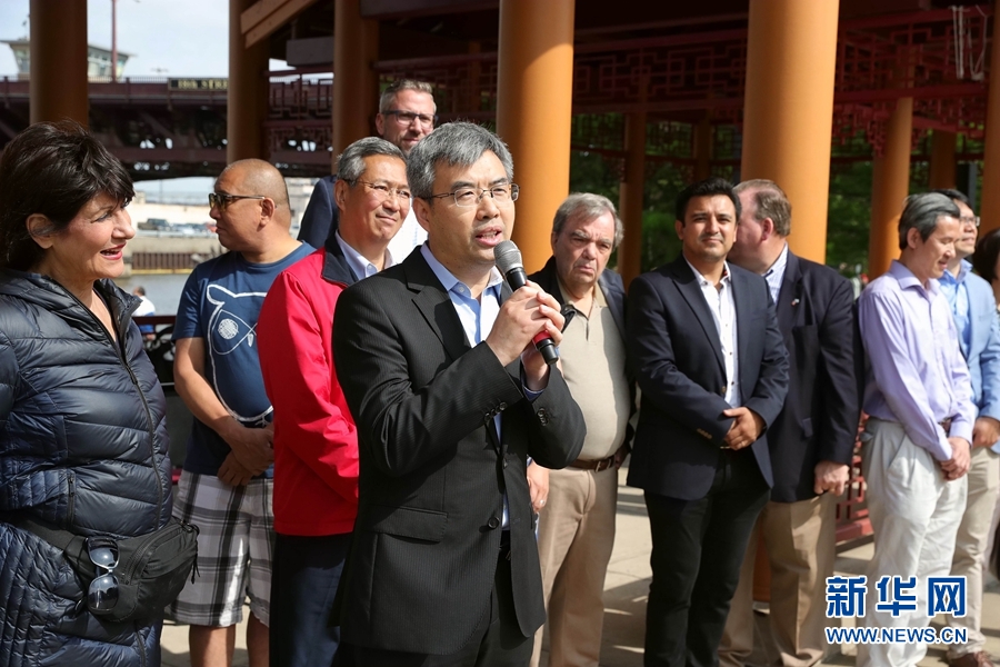 中國駐芝加哥總領(lǐng)事趙建在龍舟賽開幕式上說,比賽對(duì)于傳承中華文化、促進(jìn)華人社區(qū)與其他社區(qū)交流意義重大。記者 汪平 攝