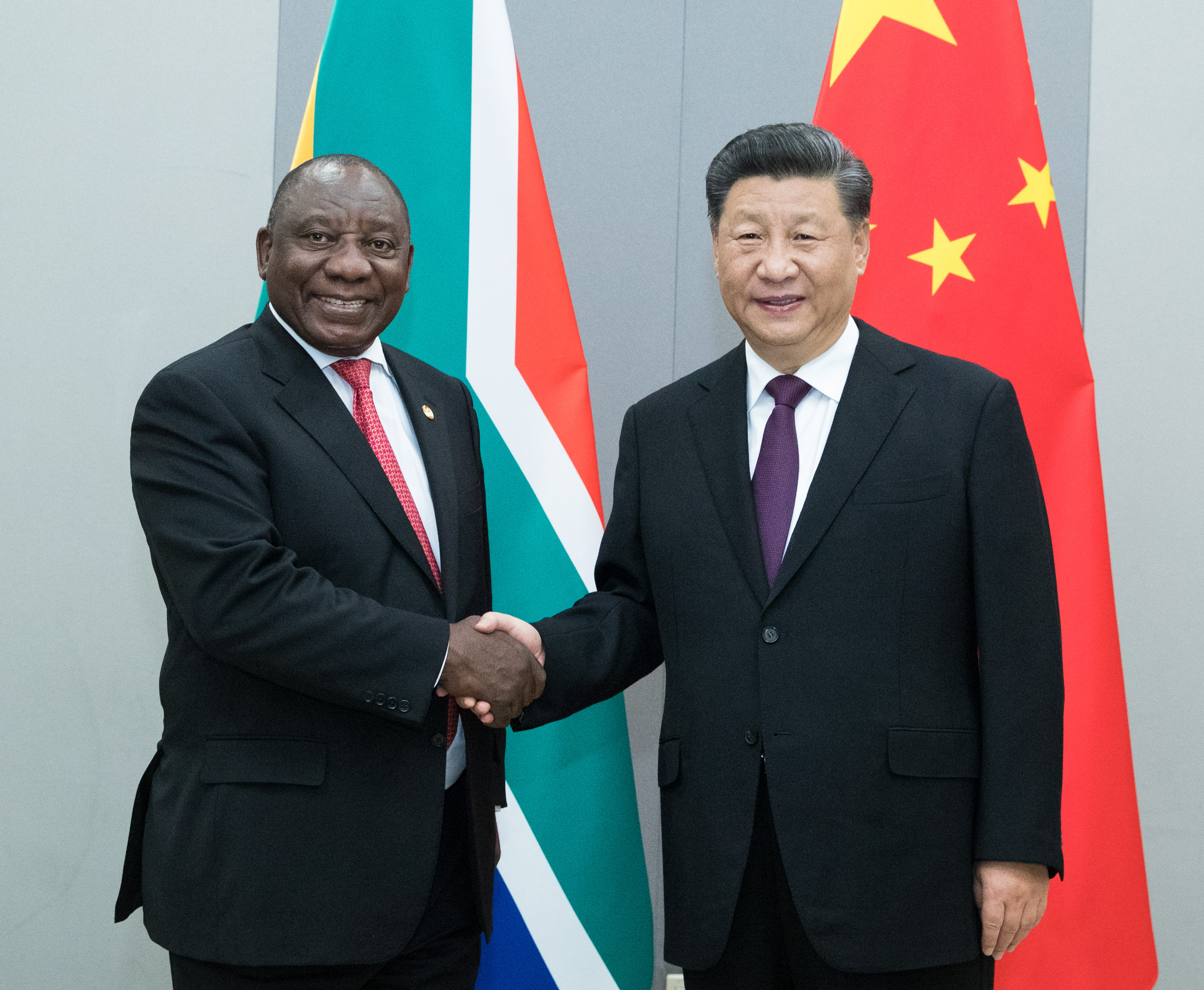 ▲當(dāng)?shù)貢r(shí)間11月14日,國家主席習(xí)近平在巴西利亞會(huì)見南非總統(tǒng)拉馬福薩。新華社記者王曄攝