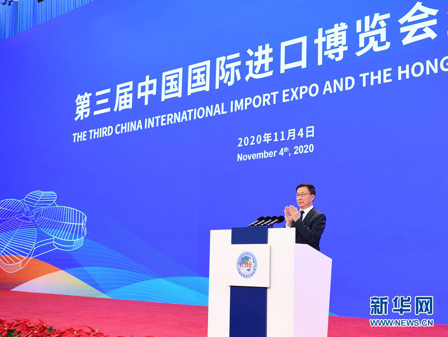 新華社上海11月5日電 中共中央政治局常委、國務(wù)院副總理韓正4日在上海出席第三屆中國國際進(jìn)口博覽會開幕式。