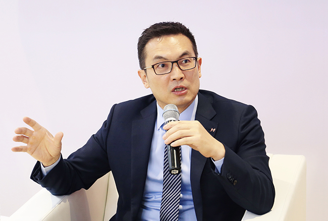 強(qiáng)生全球資深副總裁、中國(guó)區(qū)主席宋為群在進(jìn)博會(huì)上接受媒體采訪