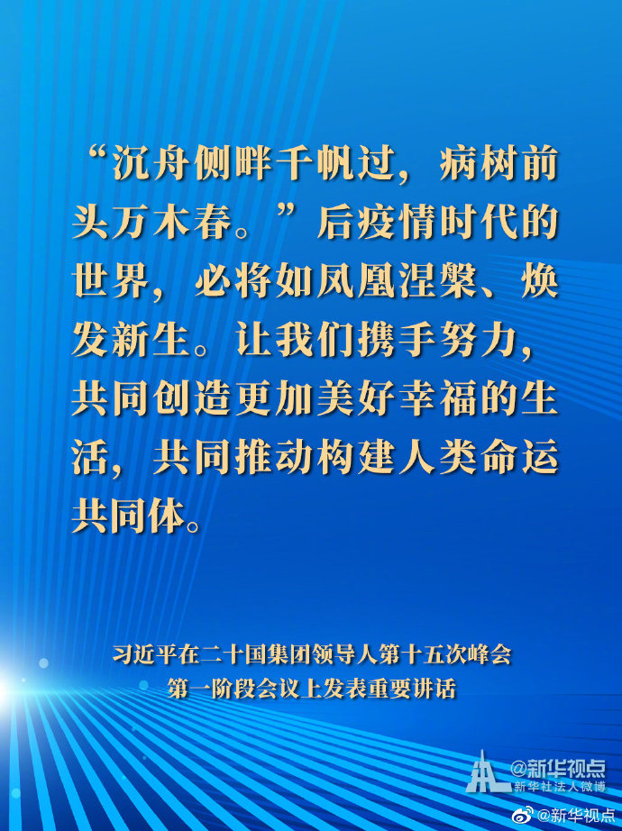 國(guó)家主席習(xí)近平21日晚在北京以視頻方式出席二十國(guó)集團(tuán)領(lǐng)導(dǎo)人第十五次峰會(huì)第一階段會(huì)議并發(fā)表重要講話。以下是講話要點(diǎn)。