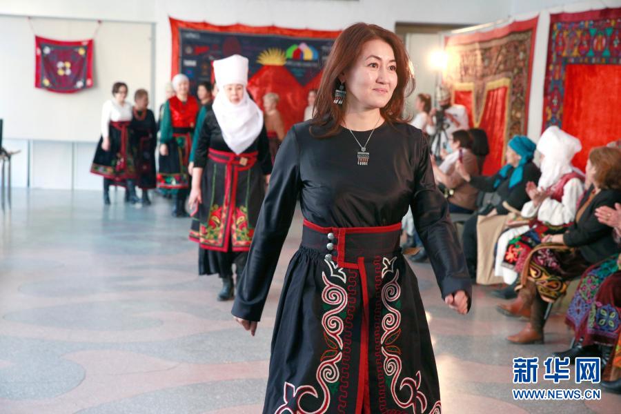 當日,吉爾吉斯斯坦首都比什凱克的國家美術(shù)館內(nèi)舉行傳統(tǒng)手工藝品比賽,其中裙袍大賽引人關(guān)注。裙袍是吉爾吉斯族的傳統(tǒng)服飾,它看起來像一條擺裙,一般穿在連衣裙或背心外面。裙袍的剪裁、顏色和圖案能夠反映女性的地位和狀況。