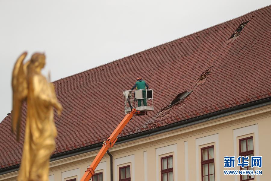 12月29日,在克羅地亞首都薩格勒布,一名工人檢查因地震損壞的房頂。新華社發(fā)(Pixsell圖片社 斯特魯尼奇攝)