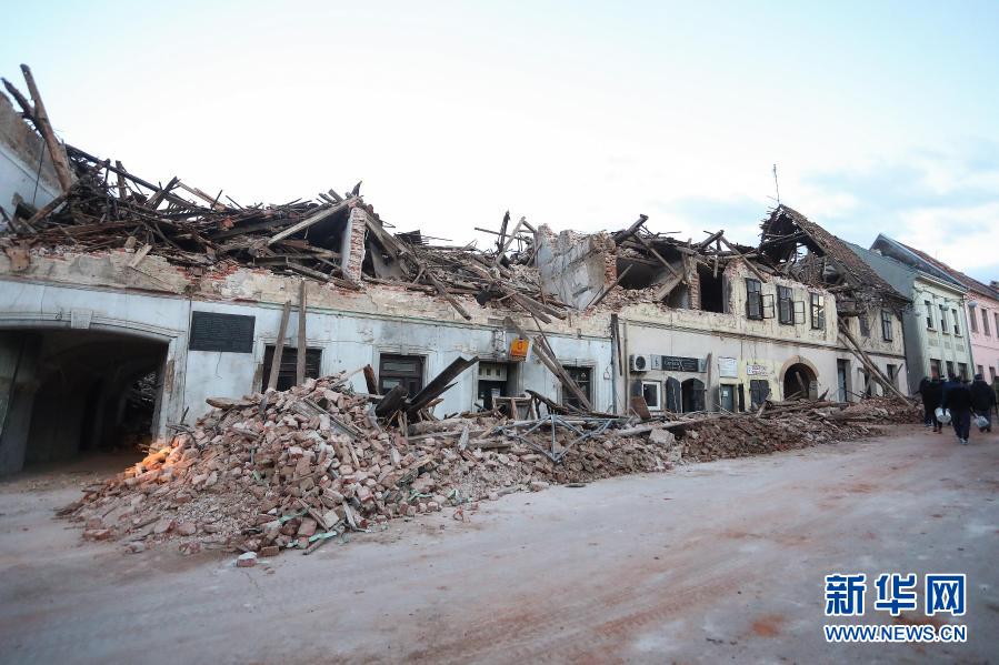是12月29日在克羅地亞小城彼得里尼亞拍攝的地震摧毀的建筑。新華社發(fā)(Pixsell圖片社 史坦?jié)蔂枖z)