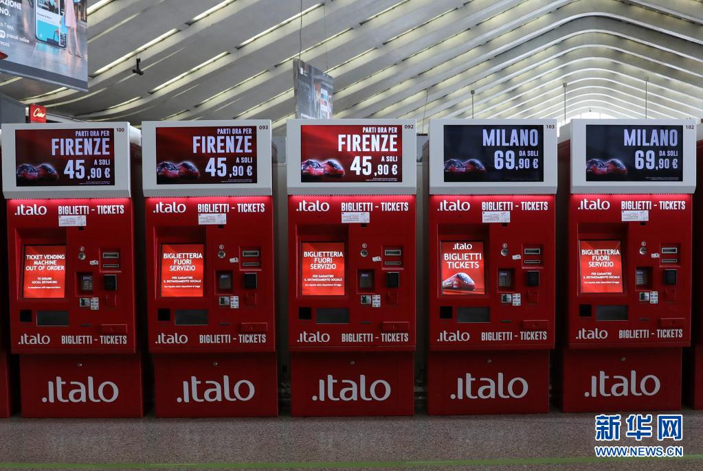 4月3日拍攝的意大利首都羅馬的特米尼火車站內(nèi)的售票機(jī)。