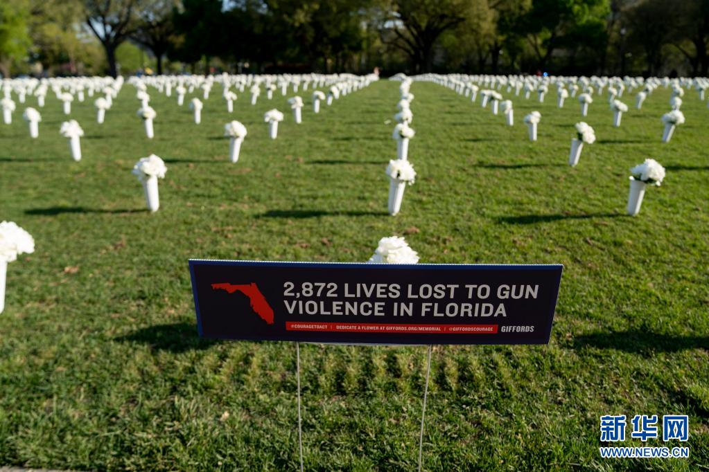 當(dāng)日,四萬(wàn)朵白色絹花被擺放在國(guó)會(huì)大廈與華盛頓紀(jì)念碑之間的國(guó)家廣場(chǎng)草坪上,以紀(jì)念在全美槍擊事件中喪生的人們。據(jù)美國(guó)媒體報(bào)道,2020年美國(guó)造成四人及以上傷亡的嚴(yán)重槍擊案數(shù)量創(chuàng)下歷史新高,較2019年激增47%。同時(shí),美國(guó)槍支銷(xiāo)售數(shù)量也突破歷史紀(jì)錄,民眾對(duì)公共安全擔(dān)憂(yōu)加劇。