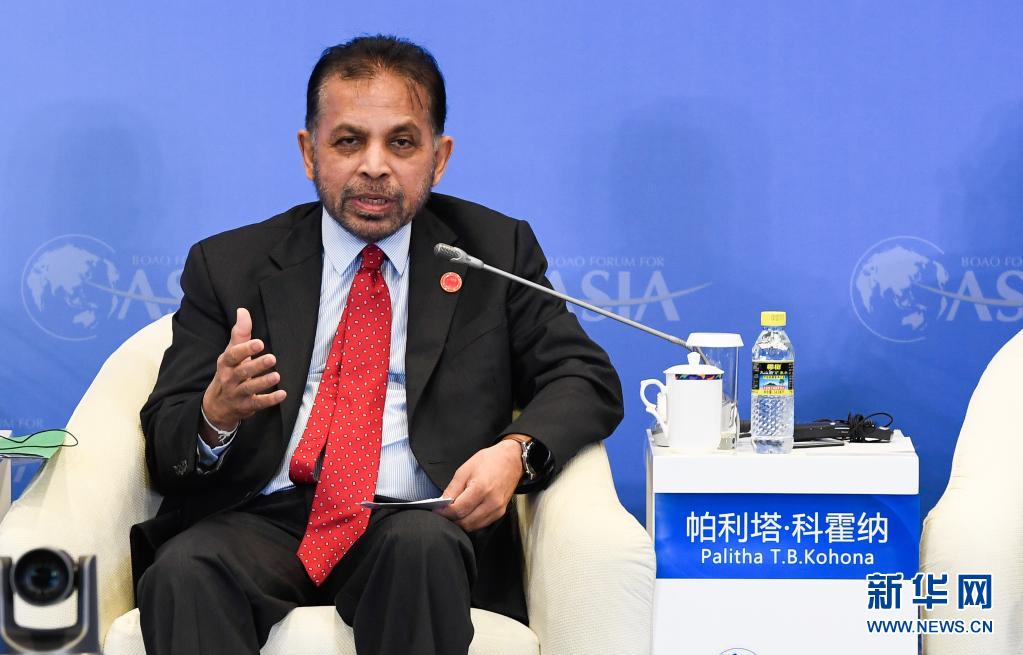4月19日,斯里蘭卡駐華大使帕利塔·科霍納在“21世紀海上絲綢之路島嶼經濟”分論壇上發(fā)言。新華社記者 楊冠宇 攝