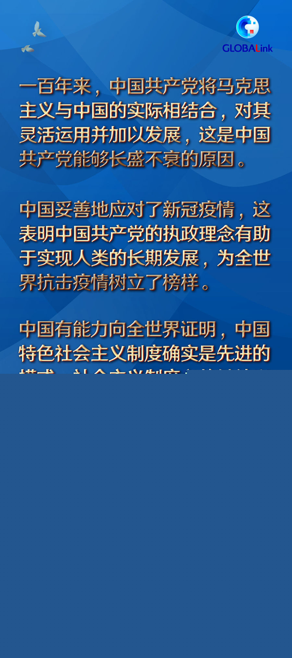 在祝賀中國共產(chǎn)黨成立100周年的同時,索科爾也希冀中國繼續(xù)發(fā)展,中國人民在中國共產(chǎn)黨的領(lǐng)導(dǎo)下取得更大成就。他相信,中國有能力向全世界證明,中國特色社會主義制度確實是先進的模式,社會主義制度必將繼續(xù)興盛。
