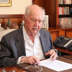 4月27日,塞浦路斯前總統(tǒng)喬治·瓦西利烏在塞浦路斯南部利馬索爾接受新華社記者專(zhuān)訪。