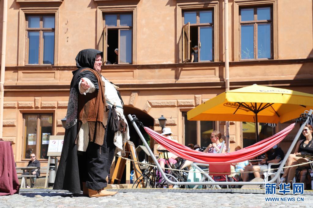 芬蘭古城圖爾庫于7月1日至4日舉行“中世紀市集”活動。人們身著中世紀風格服裝售賣貨品,表演短劇、馬戲和歌舞。