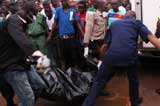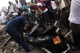 營救人員在墜機現(xiàn)場抬運遇難者遺體